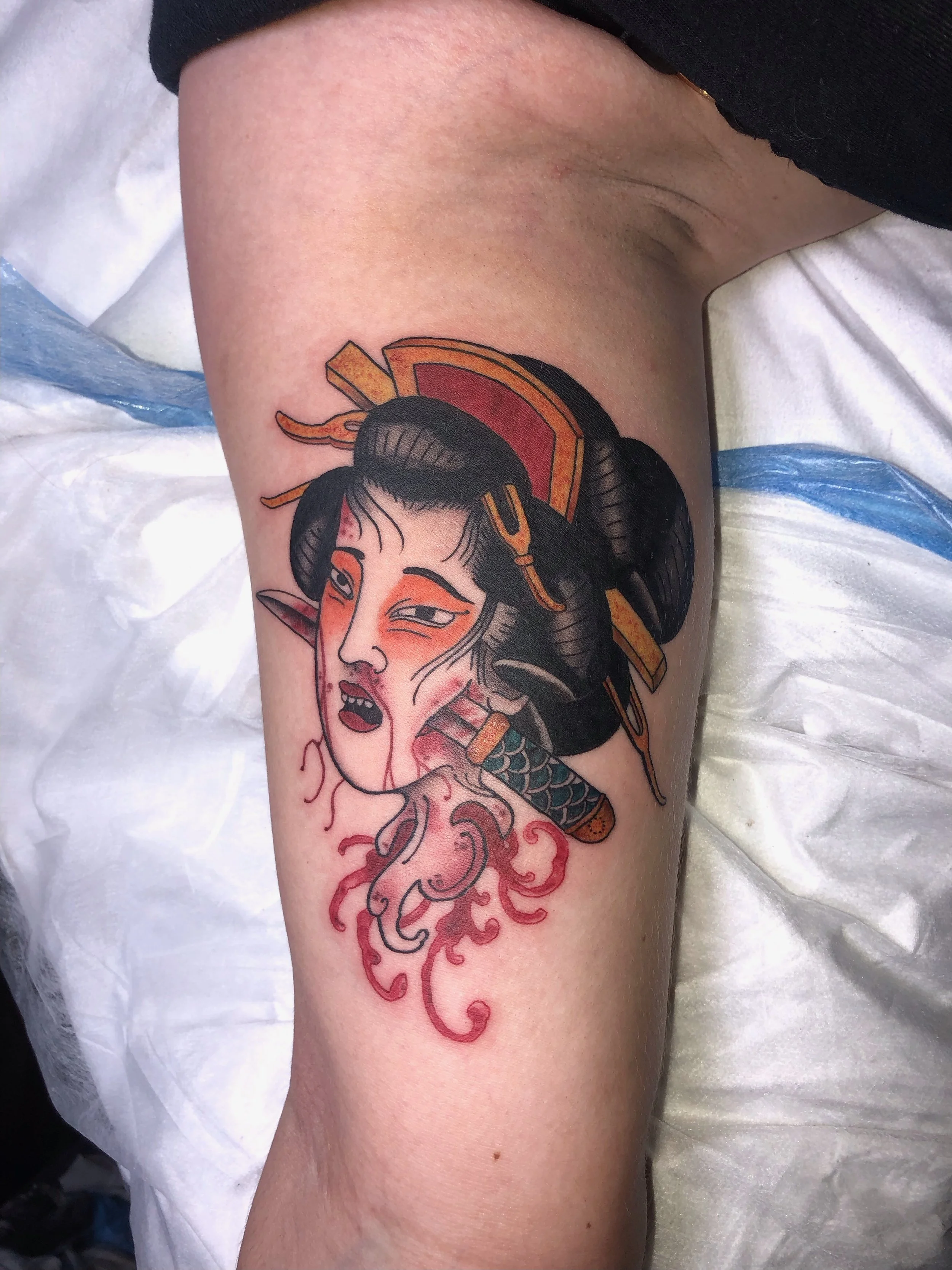 Got my apprenticeship as soon as I could and the rest is history. For my tattoos, I enjoy the all kinds of tattoos no matter the style, I always strive to give my all into everything I do how ever I specifically enjoy Neo tradional and then pretty much anything with large amount of use of black